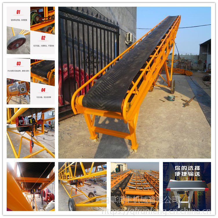 (3)结构牢固,公生产的移动式皮带输送机*业的支架 设计,可承受力很大,单体物料承受300斤左右。