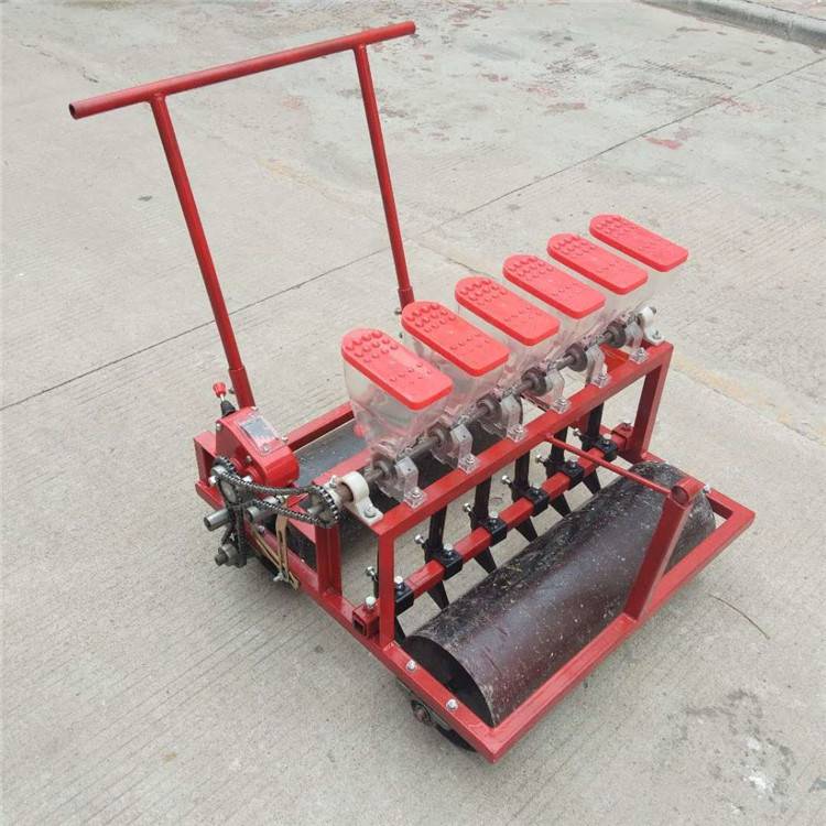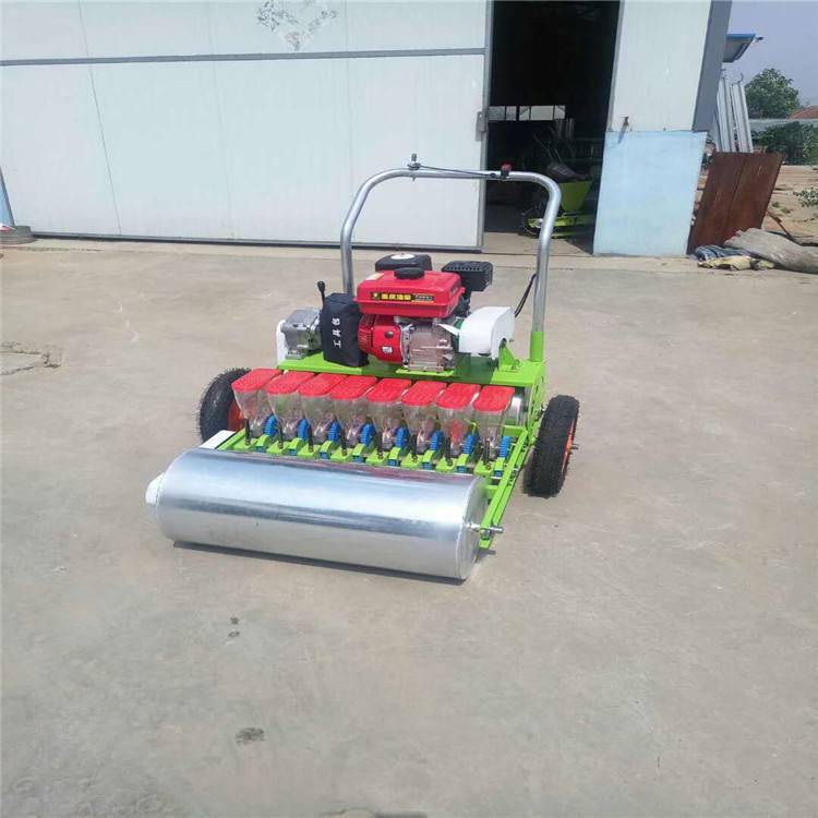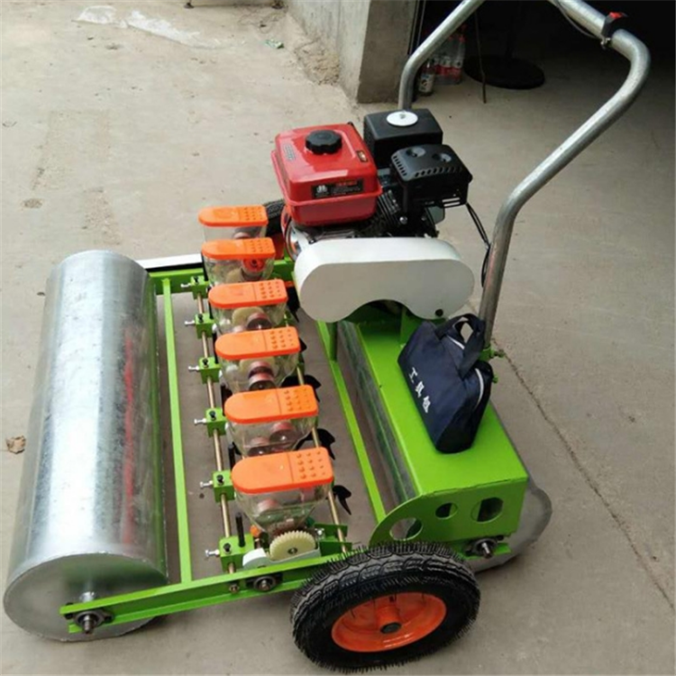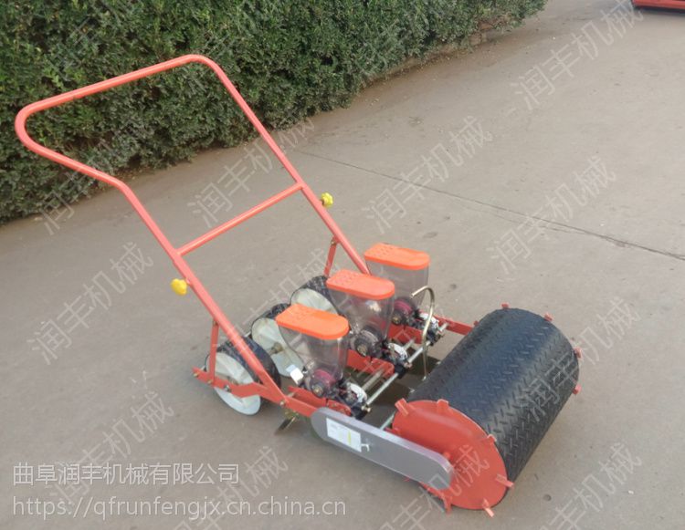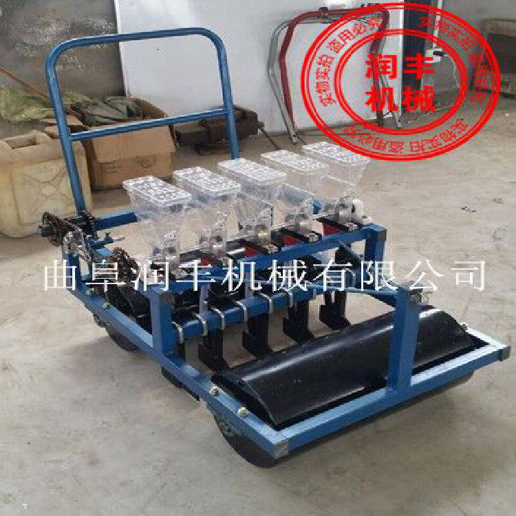 本机能够性完成开沟、播种、覆土、镇压多道播种工序。行距、株距及播种深度可自行调节。可通过换播种轮来完成不同的作物种子的播种需求。 蔬菜播种机 定做电动5行手推式播种机润丰