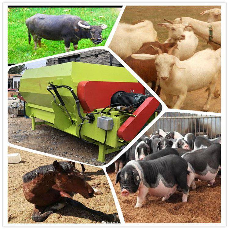 混合饲料和产量的,因为将饲料和微量元素加入饲料搅拌机混合搅拌后,可以使牲畜无选择的采食配方所确定的饲料成份,了动物对蛋白质的需求,牛羊动物体质也有很大改进,减小了新陈代谢疾病。