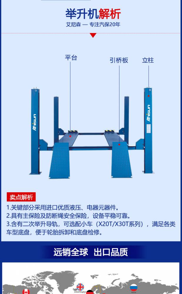 艾尼森35F0四柱举升机汽车平板四柱升降机汽修举升机 厂家直营