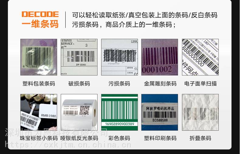 对所有标准一维码包括GS1DataBar?线性码可自动区分和解码。