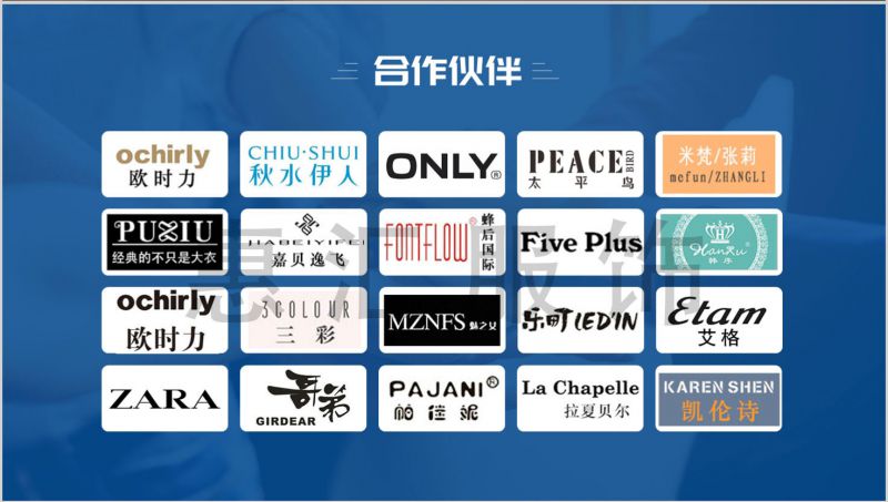 公司长期合作品牌有:欧时力、纳纹、太平鸟、风笛、哥弟、秋水伊人、衣香丽影、埃文、欧州站、江南布衣、Only、艾格、歌莉娅、虫虫、红袖、VERO MODA、乔帛、芭依璐、一日了然、贝洛安、洛贝一、双面羊绒大衣、真丝连衣裙、旗袍、拉夏贝尔、阿依莲、百家好、韩序、例外初语棉麻、一席之地棉麻、尘色棉麻、卓拉、维多利亚、维伊、味之道棉麻、等等....公司服装款式众多,风格多元化(有欧版女装,韩版女装,风衣,连衣裙,淑女装等),做工精良,货源稳定,和众多一二线品牌厂商保持良好的合作关系。公司秉承“关注客户、携手共赢”的服务理念;“折扣服饰,物超所值”的经营宗旨; “***,诚实守信”的原则。以优质的产品,***的服务,热忱欢迎各界朋友前来合作,共创辉煌!***正品,0.5到1.5折,无需***费,***金和其他任何费用,欢迎来司考察看货