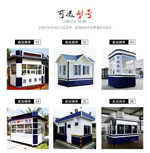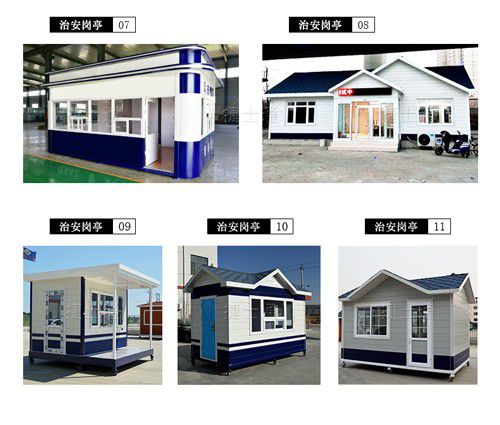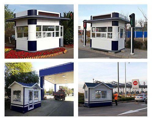 我们的产品包含了保安岗亭、收费岗亭、城市报刊亭、移动治安室、景区售卖亭、站台岗亭、玻璃户外吸烟亭等。