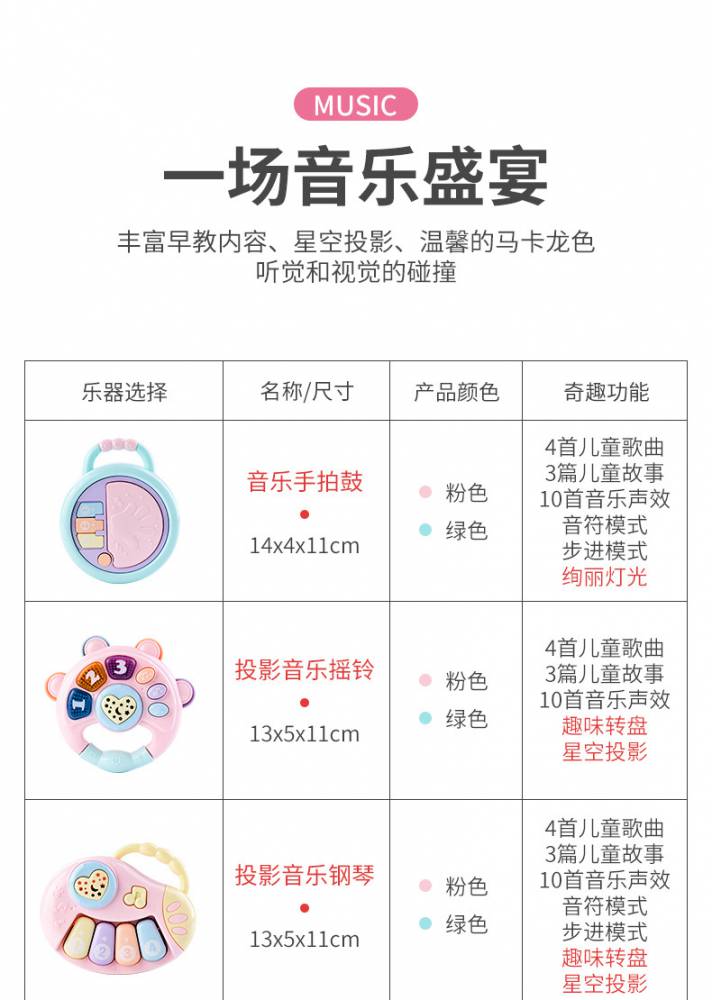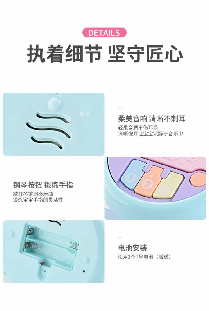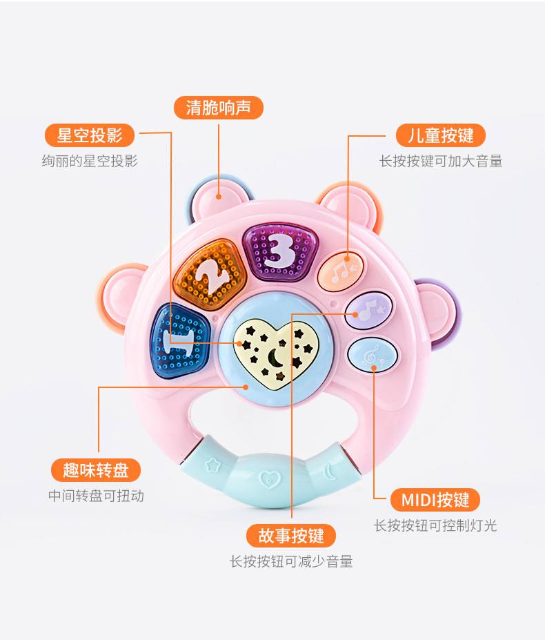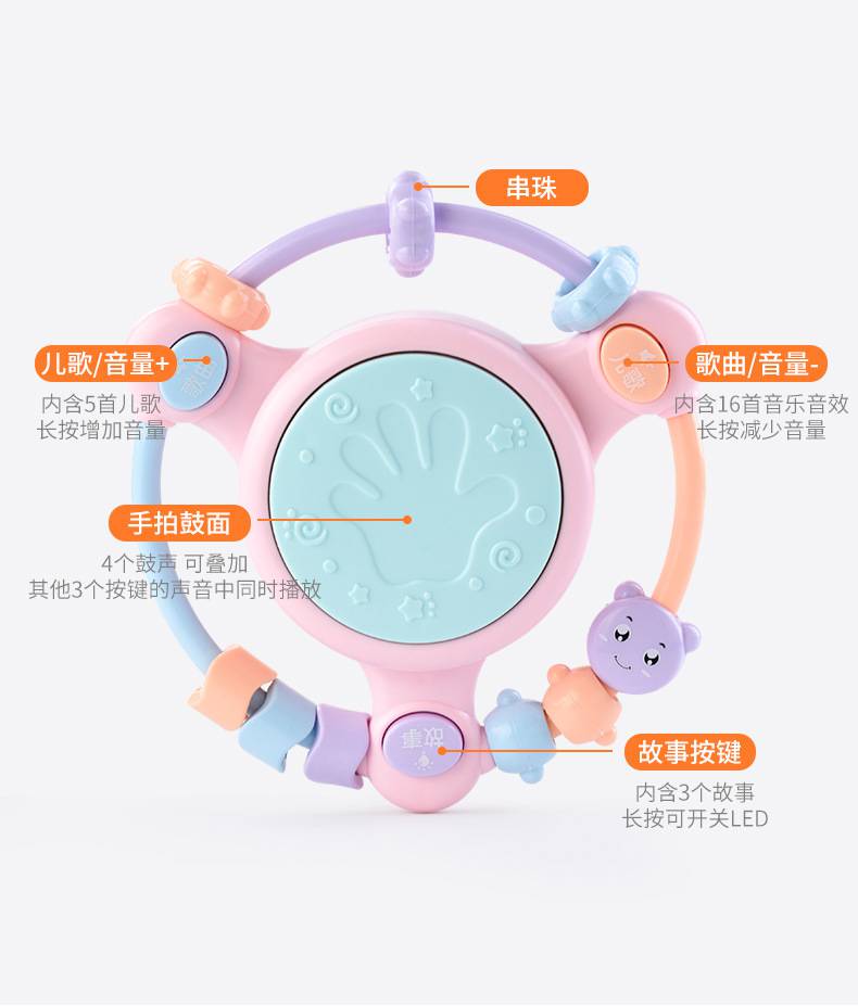 本页信息为深圳市乐乐熊科技有限公司为您提供的"聚乐宝贝婴儿0-3岁音乐摇铃手拍鼓宝宝抓握训练益智早教玩具批发"产品信息,如您想了解更多关于"聚乐宝贝婴儿0-3岁音乐摇铃手拍鼓宝宝抓握训练益智早教玩具批发"价格、型号、厂家请联系厂家,或给厂家留言。 进入店铺