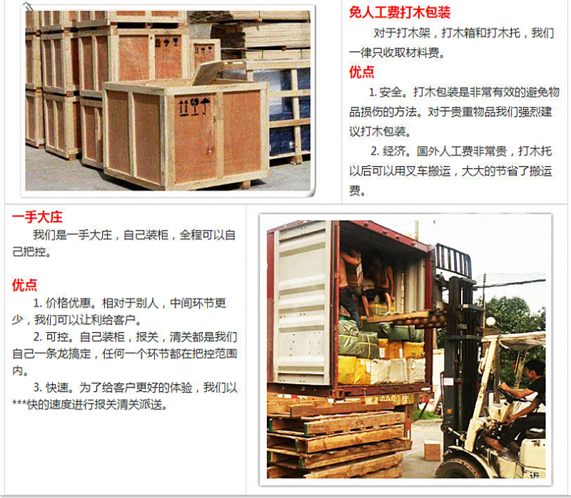 1.货物包装:家具或者其他贵重、易碎、怕压货物,请做好运输包装(打木架或者打木箱),避免在搬运过程中造成磕碰,从而损坏或者刮花。