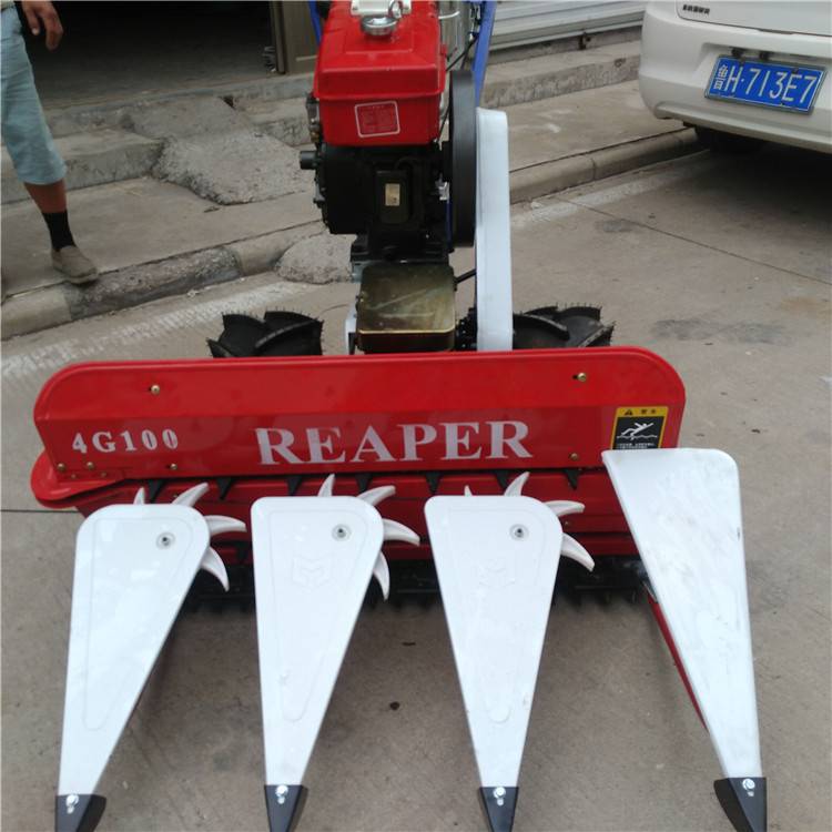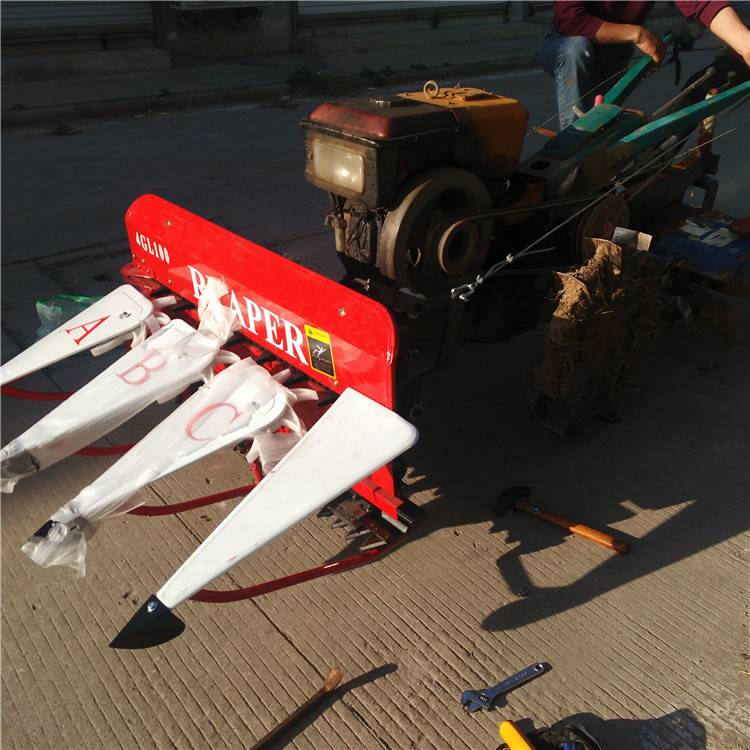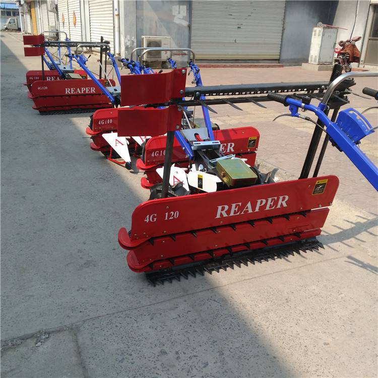 家用苜蓿100型多功能油菜籽收割机厂家曲阜市华圣机械设备有限公司过几年的研究试制成功开发了4HG型系列稻麦微型割晒机,4HG-80/4HG-100/4HG-120/4HG-150和芦苇收割机已投入批量生产,4HG型系列稻麦微型收割机,该机具有结构简单、合理、操作维修方便、体积小、重量轻、能耗低、性能稳定、可靠性好、适用性强等特点。特别适用于小地块、山地、丘陵及需要秸杆利用地区的水稻、三麦以及大豆、芦苇的收割作业。解决了几千年来农民面朝黄土背朝天,一身汗水、一身泥的苦处,也是农民挣钱致富的好机器。(工作20天收回全部投资)该机型每小时收割2-5.5亩左右,耗油0.8-1.5公升左右。