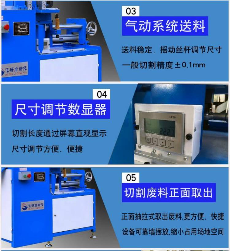 宁海飞研自动化设备有限公司是一家研发、生产及销售铝材、铜材、不锈钢、铁材等各类金属自动切割机设备的生产厂家。我们产品主要包括全自动切割机系列和半自动切割机系列两大类,我们切割机产品广泛运用于汽车行业、摩托车配件、运动器材、休闲用品、电子产品、钢制家具等各大行业。我们拥有多年的切割机设备制造、安装、调试经验,不断努力为客户提供高精度、高品质、高性价比的切割机产品,同时我们还不断努力完善售后服务体系,能够为客户提供全面的售前、售中、售后服务和技术支持。我们始终坚持以服务、品质、诚信赢得***的认可。欢迎各界朋友莅临参观、指导与业务洽谈。