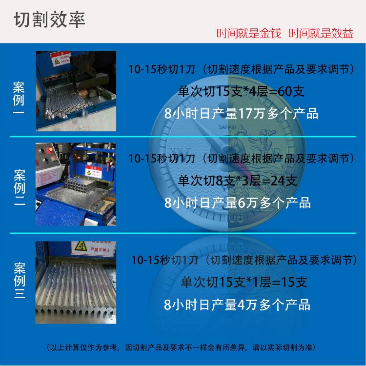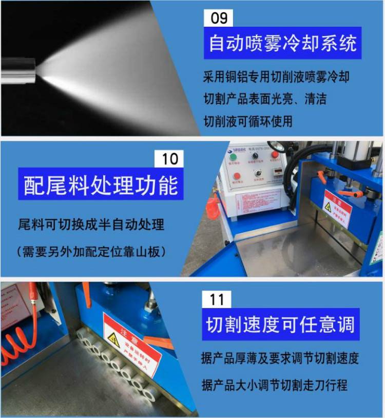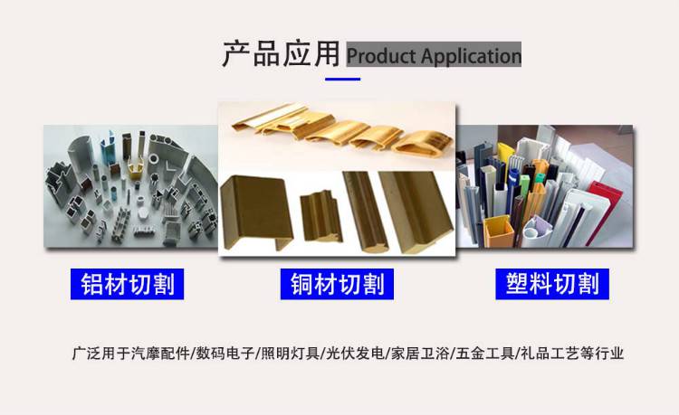 仅适用于铜材、铝材、塑料型材的切割。设备可自动送料、自动切割、自动喷雾冷却锯片。可单支或者多支料件同时锯切。