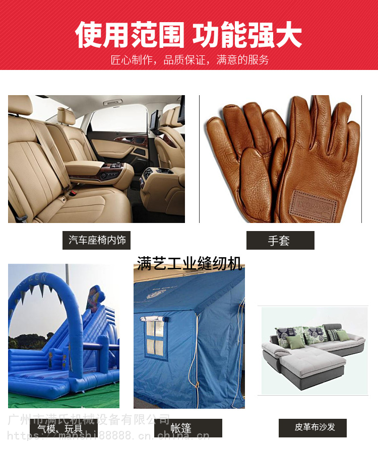 适合于:高端汽车坐垫、安全带、安全气囊等汽车饰件的缝制,还可适用于帐篷、降落伞、皮革沙发、汽车座套、体育用品、等大型器具的缝制