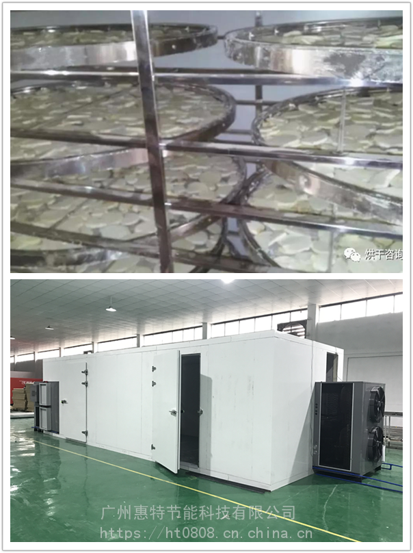 广州惠特高科山药热泵烘干机为 新型烘干设备烘干效果优越于自然晾晒与传统烘箱烘房,适用于山药加工企业进行大规模、批量化无硫山药干片的加工生产。