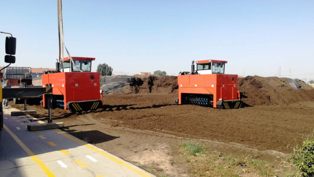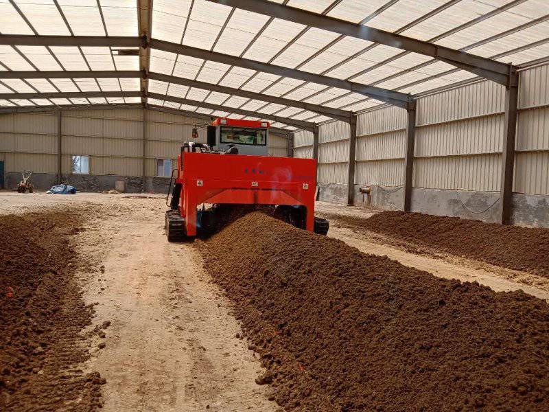 地面堆放发酵模式是目前最节省土建、人力资源的一种制肥模式。需将物料堆成长形条垛,由移动式翻堆机定时对物料实施搅拌、破碎,在好氧条件下进行有机物的分解。履带式翻抛机兼有破碎的功能,大大节省了时间和劳力,使有机肥厂生产效率和产品质量有***提高,成本大大降低。履带式翻抛机工作时可以很有效地把污泥、粘稠鸡粪等物料与菌种、秸秆粉搅拌均匀。