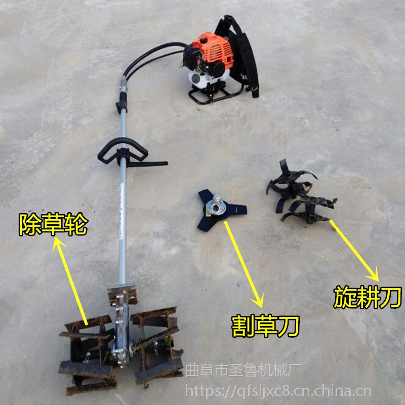 贵州黔东南汽油背负式除草机 松土锄地除草机 圣鲁牌图片视频