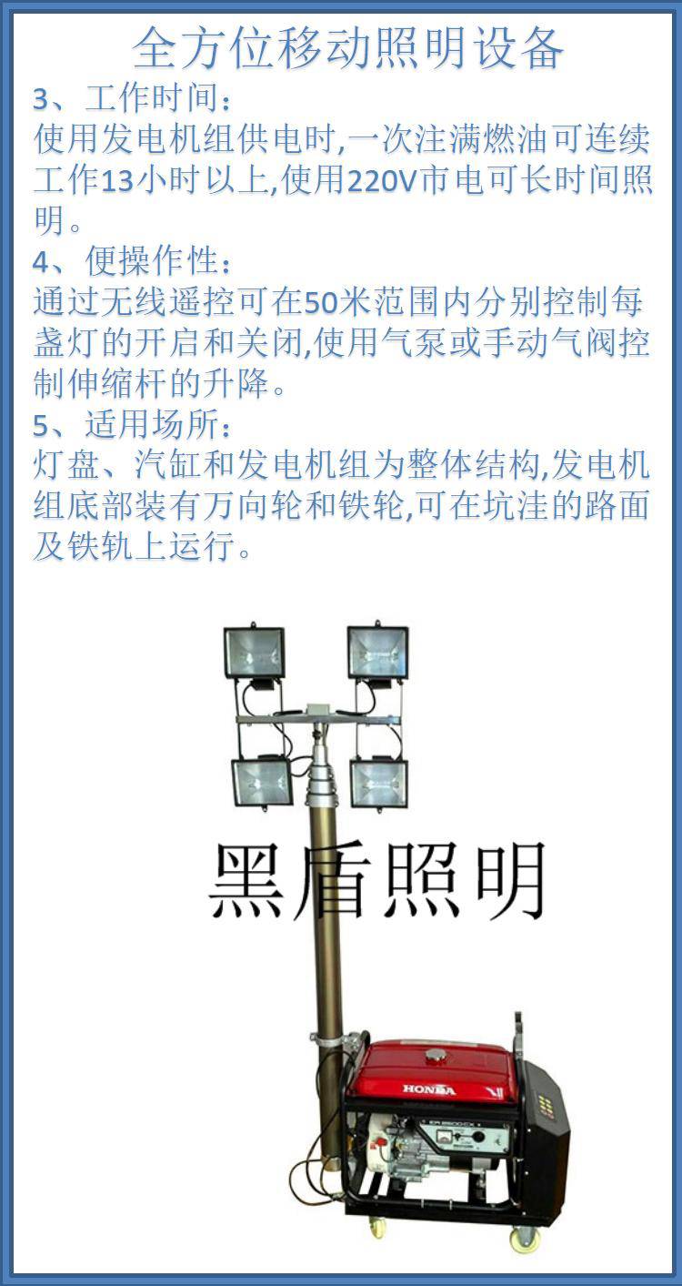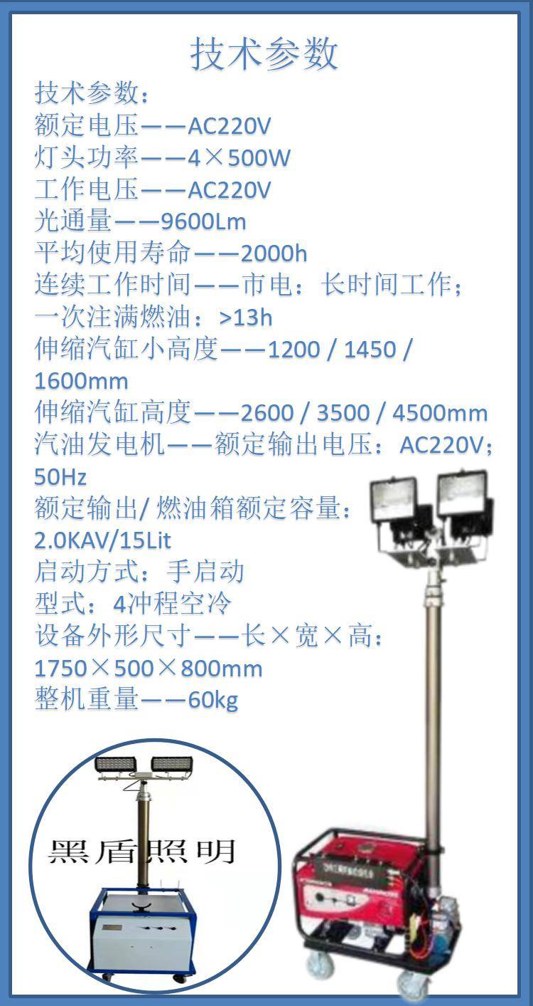 黑盾牌 便携式升降投光灯, 6米升降泛光灯组 可定制