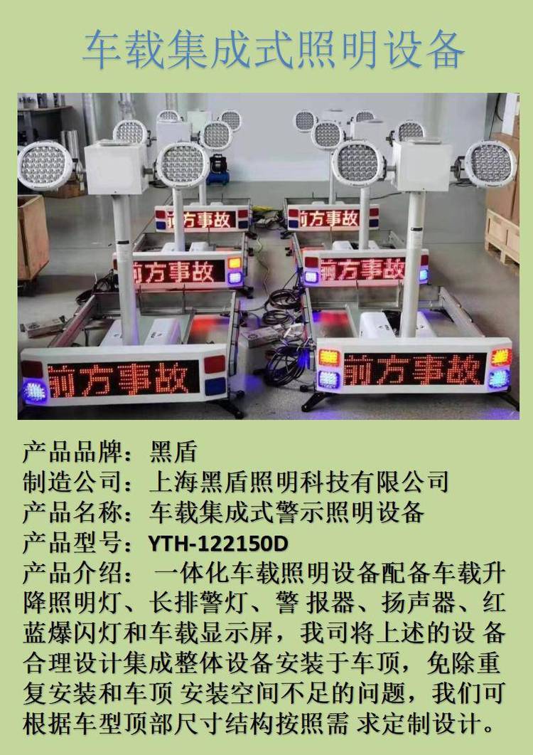 本页信息为上海黑盾照明科技有限公司为您提供的"YTH-122150D车载集成照明设备 手机APP同步编辑"产品信息,如您想了解更多关于"YTH-122150D车载集成照明设备 手机APP同步编辑"价格、型号、厂家请联系厂家,或给厂家留言。 进入店铺