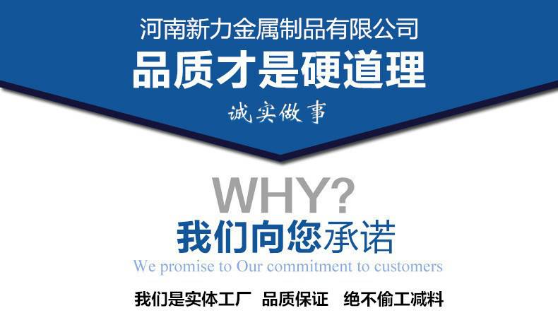 河南新力金属制品有限公司位于河南郑州,公司拥有***的生产设备,技术过硬的生产工人。现有员工300余人,专业技术人员及***工程师50余名技术力量雄厚。公司主要产品有:锌钢护栏、铸铁护栏、铁艺大门、双边丝护栏网、体育场围网、PVC围挡、注水施工围挡、大小水马、铁马、基坑护栏网等产品广泛用于高速公路、铁路、机场、码头、市政建设等众多实用性地方。我公司设备齐全,工艺***,技术力量雄厚,产品实行严格的科学管理和检测手段,并限度地满足用户的需要。新力金属制品有限公司凭借雄厚的技术力量,高品质的产品,专业的销售人员及完善的销售服务,使产品***二十多个省市,深受用户的好评和信赖。始终坚持“质量为先,诚信为本,不断***,勇于创新,”的发展精神。努力为我们尊敬的客户提供高质量的产品和***的服务。