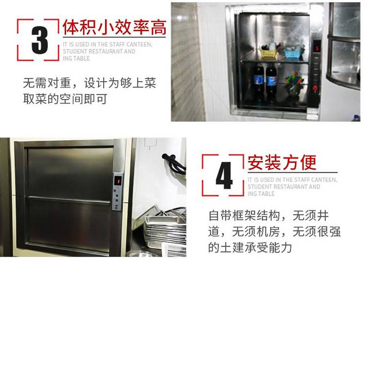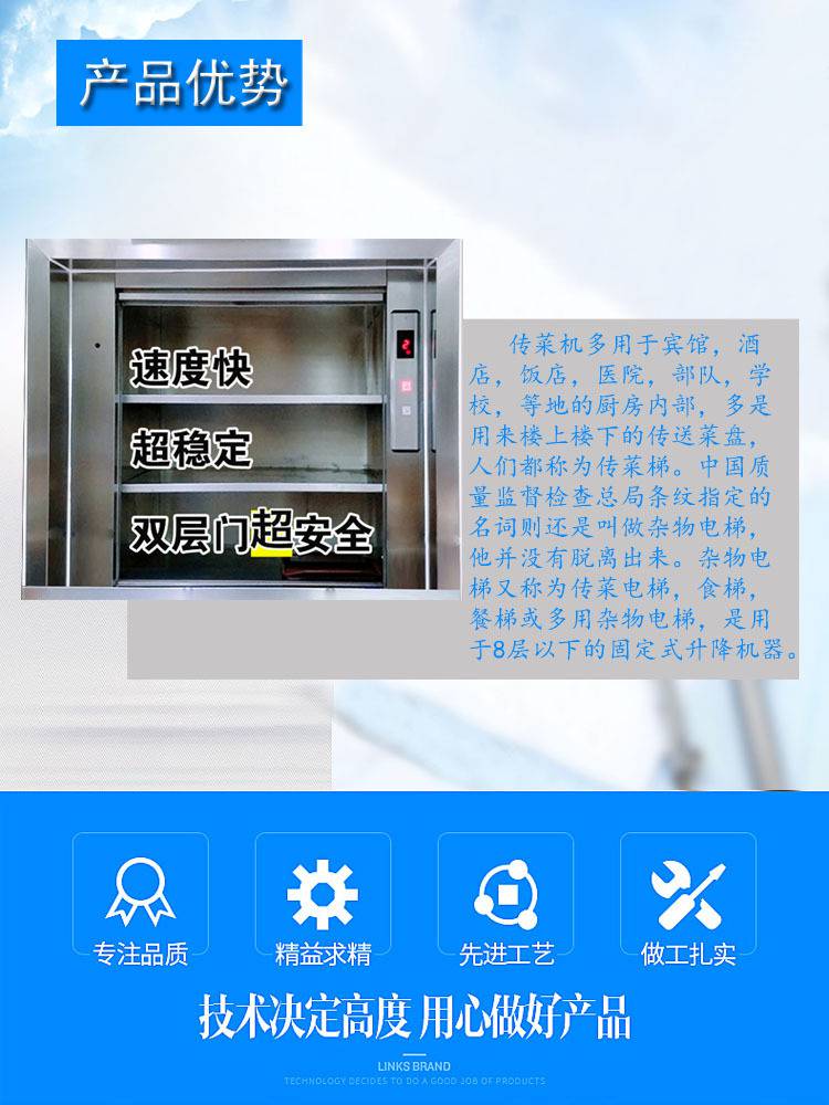 随着时代的发展,传菜梯已经成为各大酒店饭店的必需品,他使用寿命长,舒适灵活,节能环保,实在是厨房人员的终身良伴。