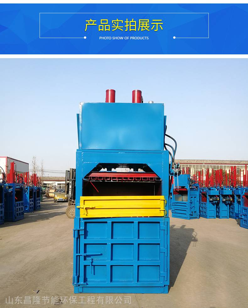 本产品是单双缸设置手动式控制,操作简便,维修率低,占地面积小,是超市,小型回收厂,企业压缩纸箱,易拉罐,薄膜以及塑料瓶等物料,压缩后方便堆放以及运输,减少废旧料堆放空间。