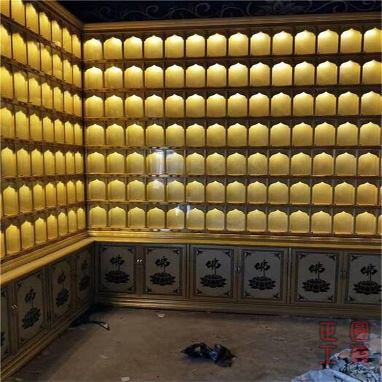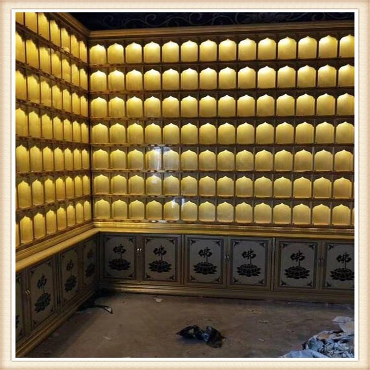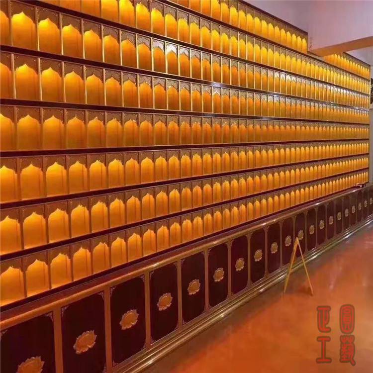 产品描述 正圆工艺有限公司是铝合金骨灰存放架、骨灰寄存箱架、殡葬用品、万佛墙、牌位楼等产品生产加工的公司,拥有完整、科学的质量管理体系。正圆工艺有限公司的诚信、实力和产品质量获得的认可。 公司的每个部门(业务企划部、开发设计部、雕塑(刻)部、木工部及箱架组装加工部等)都各显神通、各尽所能的為(公墓、陵园、殯仪馆、***及骨灰堂等)提供的服务。 铝合金千佛龛、万佛龛、千佛墙选用经过电泳处理的铝合金材料,产品防火防潮,防腐;安装简单,产品环保,安装好后即可使用,不会有异味和有害物质产生;工艺美观,色彩逼真。各式花纹图案均可设计订制。如有特殊要求也可来图来样定做。确保褪亮、、线条流畅、整体美观 四格千佛墙采用了的冷扎镀模压成型,对产品表面进行了去锈、除油、磷化等多道加工工序制成,并且使用国内外的静电喷塑,进行了高温塑化,所以质量和品质都是非常有保障。