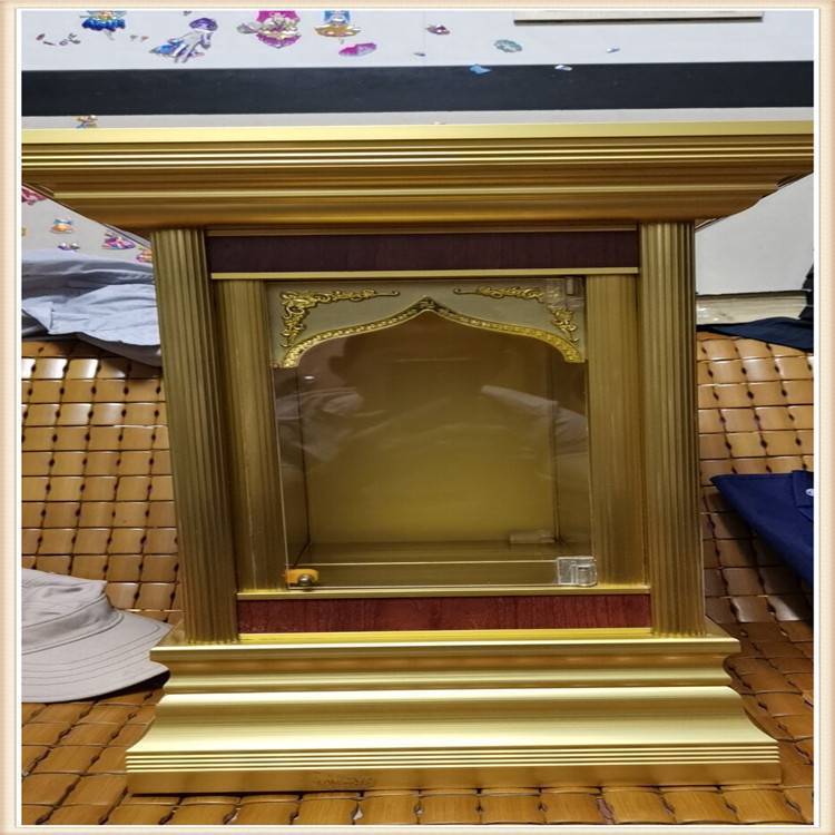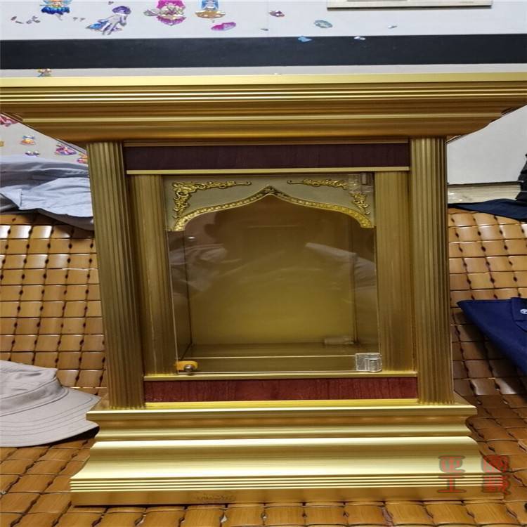 铝合金佛龛的特点: 防火、、因为铝合金是属于一级防火材料,它的制造过程是先由铝锭溶化成铝棒,然后再通过高温通过模具挤压成型,后进行着色的表面处理,而且它的表面颜色处理可以多元化,有电咏、电镀、三酸抛光、粉体喷涂等,我们的箱体表面较多采用粉体喷涂(即烤漆)或电咏来处理,它能够根据客户需求做成不同的颜色,它还有很大的特点就是重量轻,但承重大,据检测每个格位承重几百公斤的压力,而且整体重量轻能够减轻楼地板的承重力,我们公司采用的是6063铝合金。 我们的箱体的结构有申请实用,它的基座及上修饰都会与楼地板做固定。正圆工艺生产的铝合金箱架是采用结构的铝合金型材质组装而成,分有经济型与豪华型二种,面板能够根据客户需求进行设计,打样,可以满足不同客户不同的要求,箱架尺寸也可依客户的需求来量身定做。