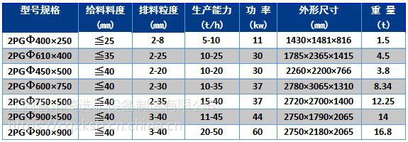 | 出料粒度:20mm | 生产能力:500kg/h | 耗电:30kw |