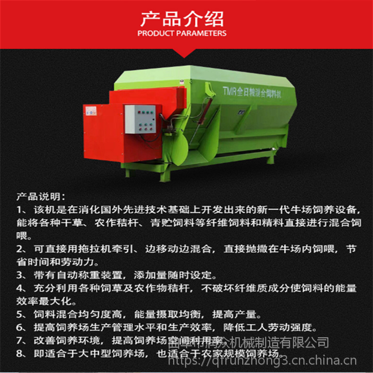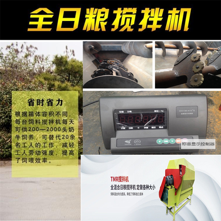混合过程温和,不会破坏物料的原始物理状态。装填量可变范围大,出料采用底卸式大开门结构,排料迅速***;出料口密封可靠,无漏料现象;机内装有液体添加管道,可添加油脂、糖蜜等液体,满足饲料的需要。TMR搅拌机两种牵引方式 饲料营养浓度一致混料机 全日粮搅拌机