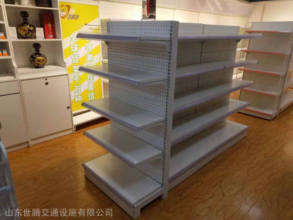 1.美观大方、结构牢固、规格多样;设计造型具有时代气派,超市货架是单双面货架可以相互结合,单面货架可与转角配套结合,双面可与半圆配套结合;层间距可任意调节,显得***大方;