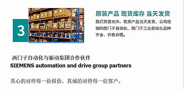 ??2、系统及伺服电机,力矩电机,直线电机,伺服驱动备件等等。主营产品或服务:西门子PLC,西门子变频器,西门子数控系统,西门子伺服电机,西门子人机界面,西门子软启动器,西门子触摸屏,西门子工业以太网,西门子LOGO!,西门子SITOP电源,西门子软件,西门子线缆等!