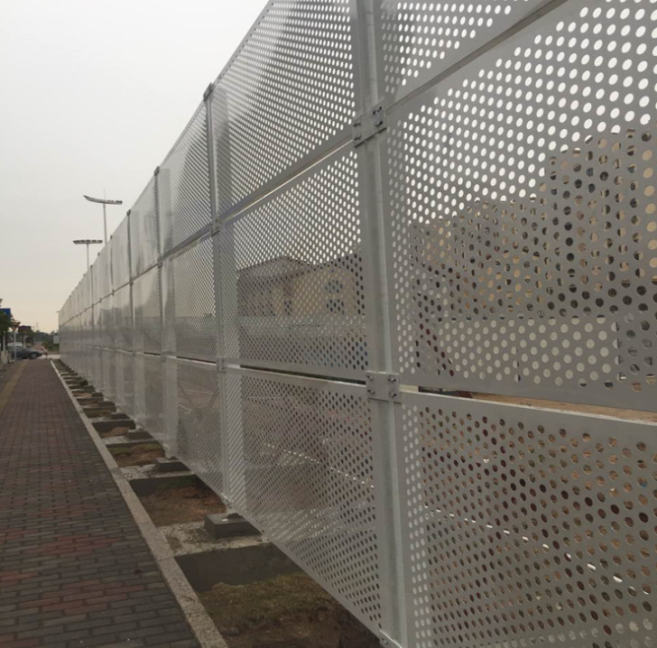 Wind barrier fence at Yangjiang Beach Construction Site, ***lated punching net by roadside construction, punching board manufacturer in Foshan