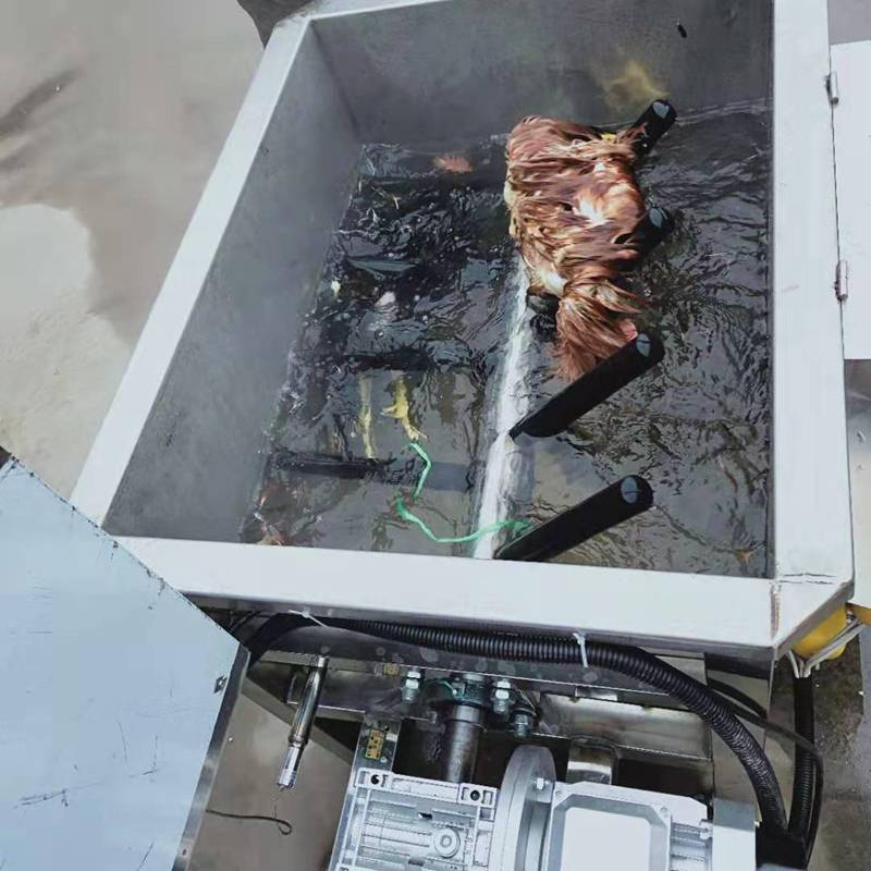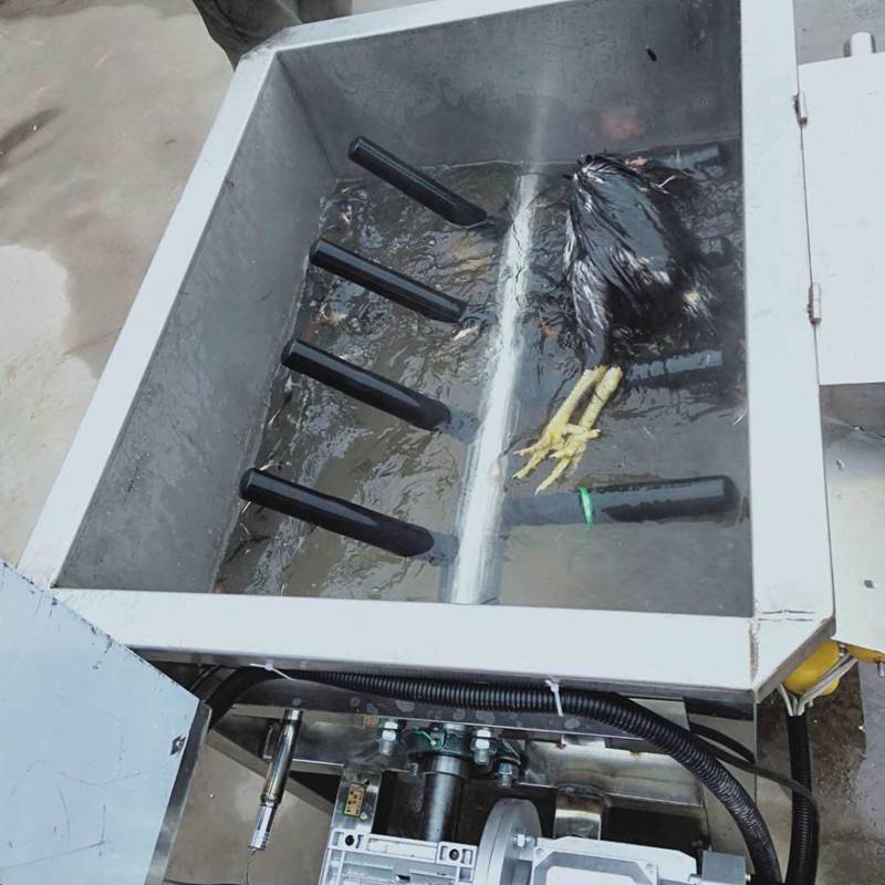 小型搅拌烫毛机是家禽屠宰加工不可缺少的专用设备,该机广泛应用于鸡.鸭.鹅屠宰工艺流程中的浸烫工艺,是家禽屠体脱毛之前的必用设备,。根据不同的禽类,水温控制在60—68°C之间,浸烫时间在1分钟左右。渐进式搅拌使禽体羽毛浸烫的更加均匀,***,具有占地面积小,耗能少,浸烫效果好等优点。