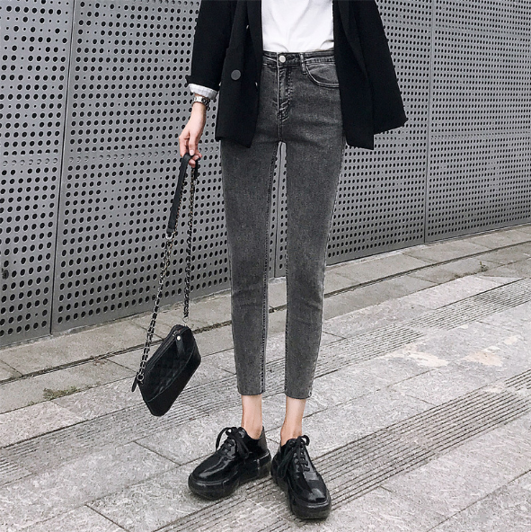 | 主面料成分的含量:81%-90% | 款式:铅笔裤/小脚裤 | 颜色:黑色、 灰色、 浅蓝 |