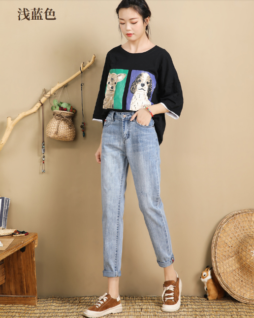 | 腰型:高腰 | 牛仔颜色:浅色 | 厚薄:普通 |