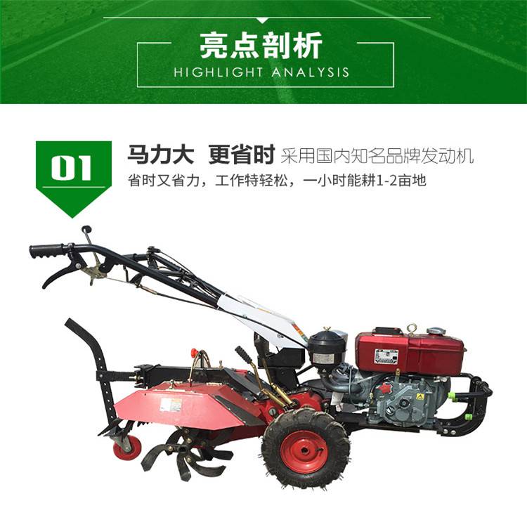 农民朋友用微耕机,目的是想省力,因为微耕机可以实现一机多用,旋耕、开沟、除草、起垄、回填等,只是需要作业时换不同的刀具即可。多用旋耕机 小型开沟翻地机 林地苗圃松土除草机。而发动机也可根据农民朋友的不同需要进行选装,比如汽油或柴油,马力可以有6马力、7.5马力、8马力、10马力、12马力等。汽油柴油旋耕机 果园耕地除草机 林地耕地碎土机