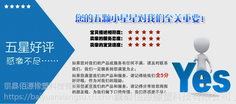 景县佰源橡塑科技有限公司在河北省东南部景县,京沪线、石德线、京福高速、济石高速、京济公路都由此经过,交通十分便利,地理位置十分优越,是一家集研究、开发、生产和销售橡塑制品为主的综合型型企业。公司凭借稳定的产品质量,完善的施工应用技术,周到的售后服务,倍受客户的信赖与好评。现有公司员工120名,专业技术人员18人,现有平板硫化机,编织机,注塑机,及各种生产检测设备百余台! 公司主营产品有:高压胶管,低压胶管,橡胶制品,金属软管,补偿器,聚氨酯制品。产品品种齐全,检测手段完善,质量可靠,供货及时,主要应用于机械制造、矿山、油田、冶金、钢铁、化工、制药等行业。本公司产品已销往全国三十多个省、市、自治区,并出口韩国、俄罗斯、日本、意大利等十几个国家。公司在严格执行生产标准,注重产品质量的同时,还积极与客户进行沟通,了解客户的需求,认识到我们的不足,并为客户提供专业和及时的售后服务。 我们始终以"科技***,品质取胜"为经营理念,承秉"以用户为标准,以科技为依托,以质量求市场,以管理求效益"的宗旨,竭诚为用户提供最满意的服务。 热诚欢迎广大客户光临洽谈业务,愿与世界各地客户携手共创美好明天!