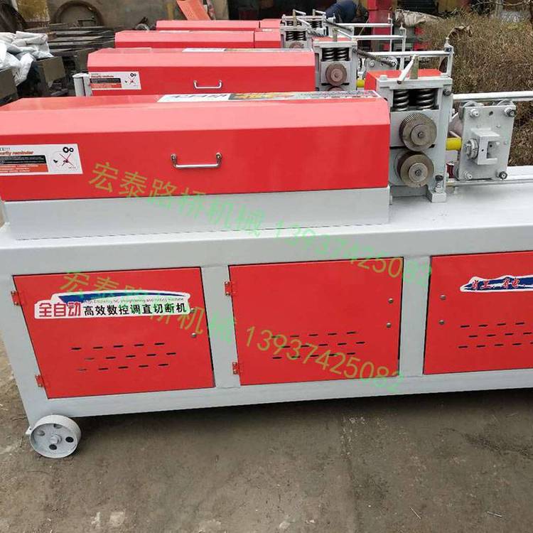 该机结构是由高速转子旋转调整调直轮模角度,达到调直的效果,然后通过牵引轮向前牵引钢筋。钢筋达到要求尺寸后,有微电脑控制切刀切断钢筋。本机器有着尺寸误差小调直速度快的特点,切断长度可根据客户要求定制。可调直切断不锈钢丝、铝丝、冷拔丝、包塑料皮钢丝等、切口齐、误差小、性能好。