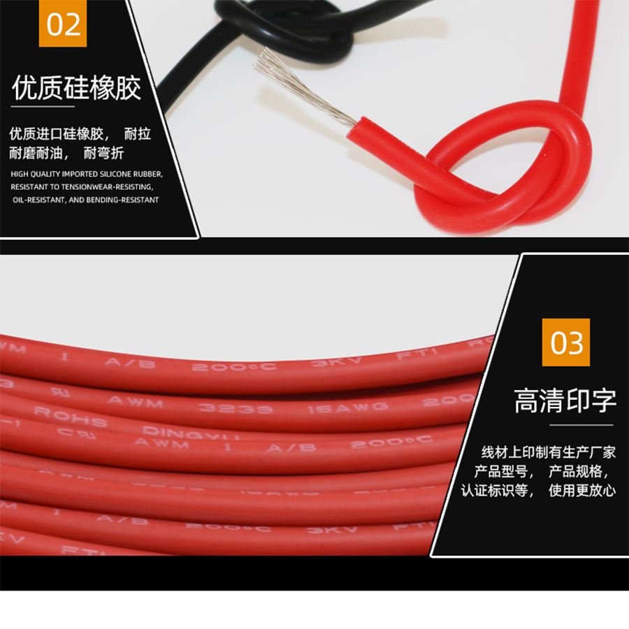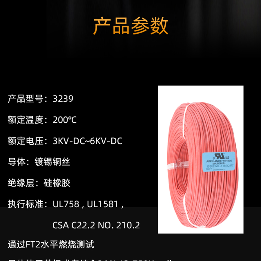 高温硅胶线UL3239美标16AWG 软硅胶线耐温200度耐高压3KV电子导线