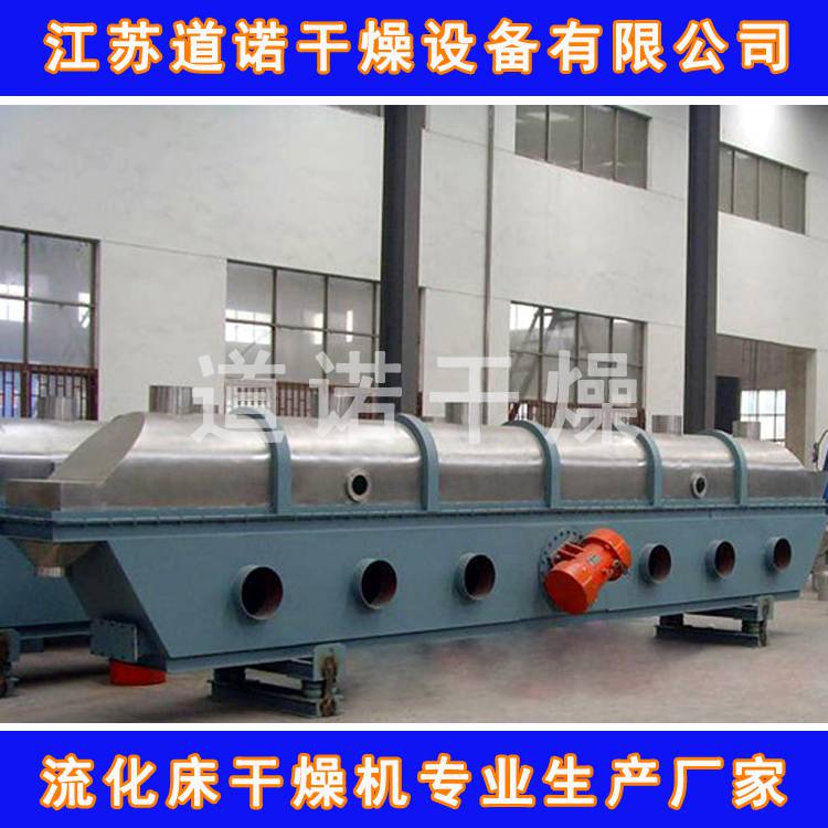 物料自进料口进入机内, 在振动力作用下, 物料沿水平方向抛掷向前连续运动,热风向上穿过流化床同湿料换热后, 湿空气经旋风分离器除尘后由排风口排出, 干燥物料由排料口排出。