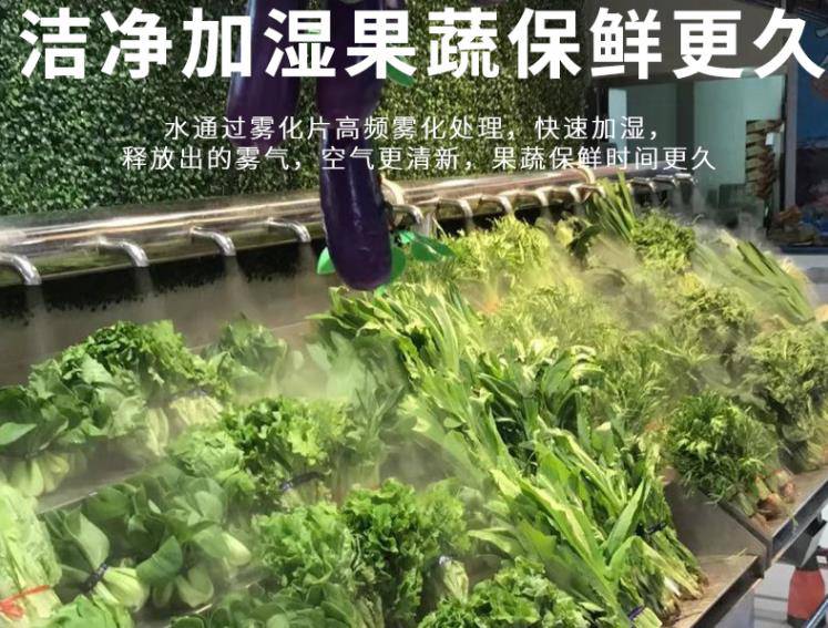 蔬菜架加湿器 风幕柜加湿器 冰台加湿器 摆菜台加湿器 新闻资讯 大家都应该知道,蔬菜如果不新鲜,不仅色、香、味等各个方面都会大***扣,而且其所含的很多营养成分也都会悄悄溜掉;所以,蔬菜保鲜就显得尤为重要了;那么,蔬菜如何保湿保鲜?是现在很多超市卖场、酒店餐饮等行业最为关注的一个问题!一般的新鲜蔬菜摆放在超市卖场的展示架或是酒店餐饮的菜台上,往往会在较短的时间内就失水,失去原有的新鲜度,营养成份等!