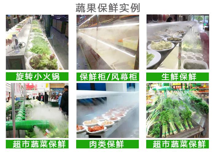 三. 提高蔬果的视觉效果蔬果在喷雾后会看起来格外新鲜,也就更能迎合顾客心理。蔬果的新鲜会提升顾客对商店处理这些产品的总体好感。因而给顾客更好的商场形象和价值。
