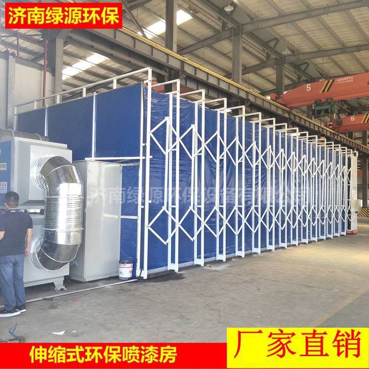 济南绿源环保设备有限公司,定做伸缩式喷漆房,大型机械设备喷漆房,钢结构喷漆房,移动伸缩式喷漆房,环保喷漆房等涂装喷漆设备。