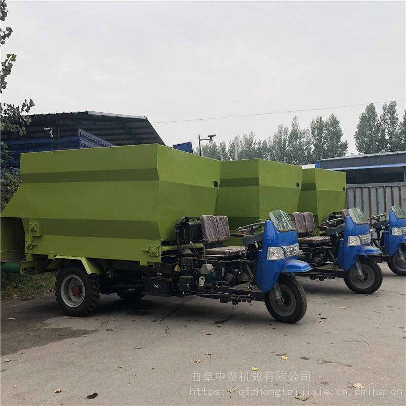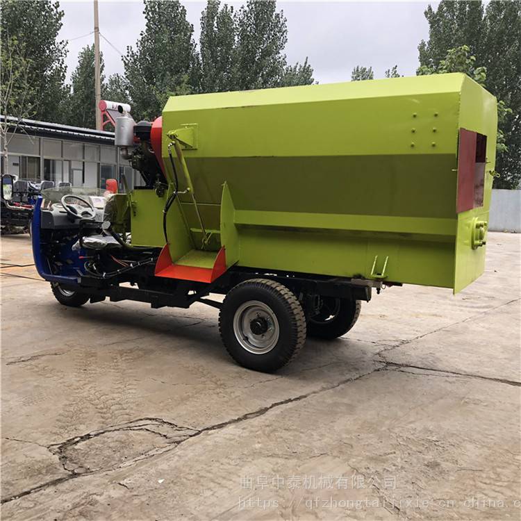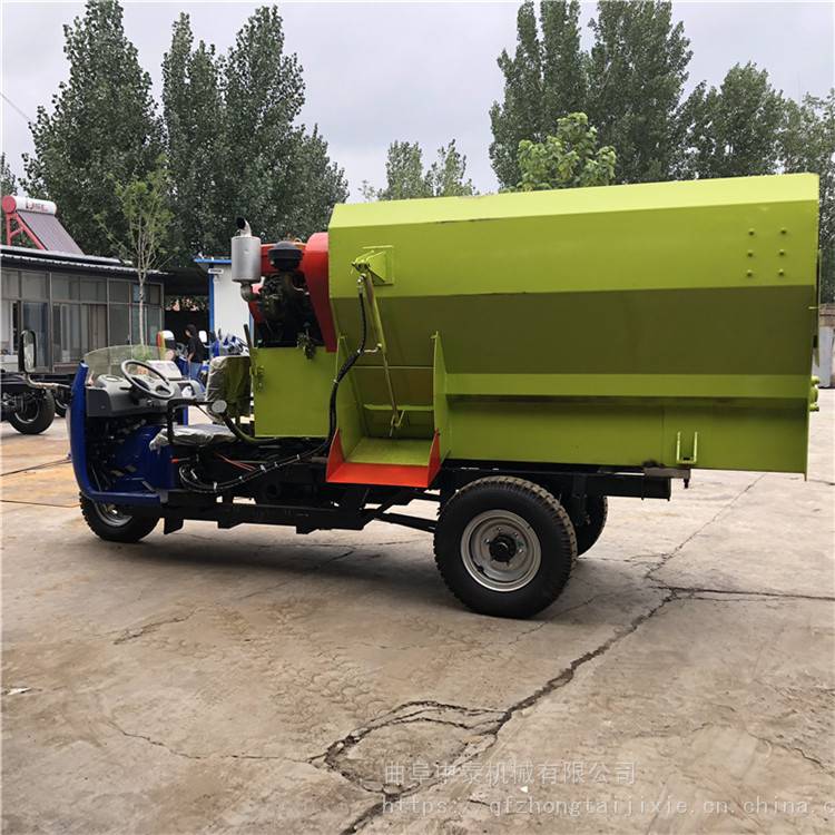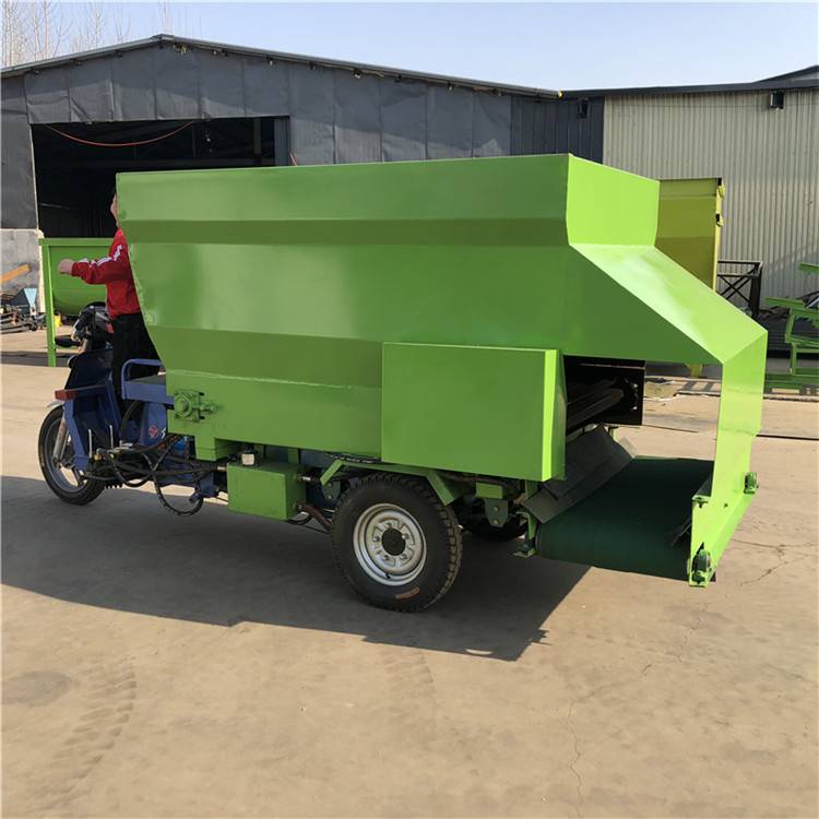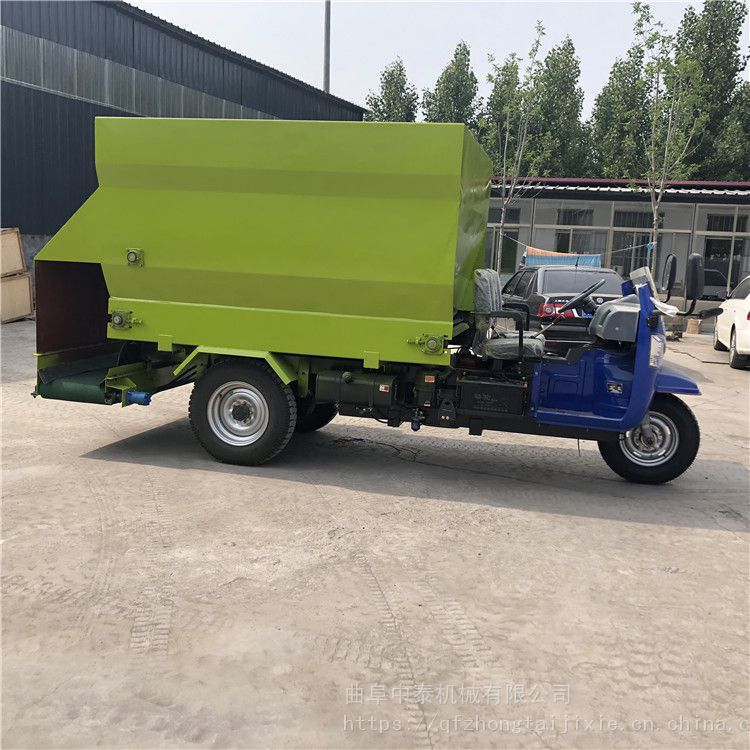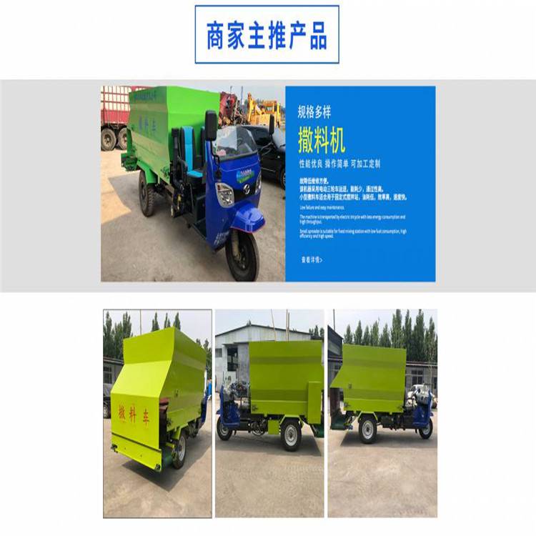 德州养牛场撒料车 畜牧场饲草喂料机 三轮双向出料撒料车