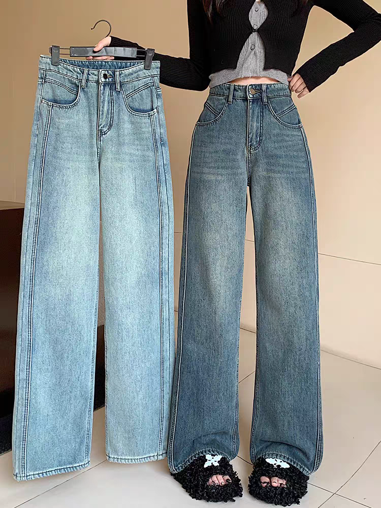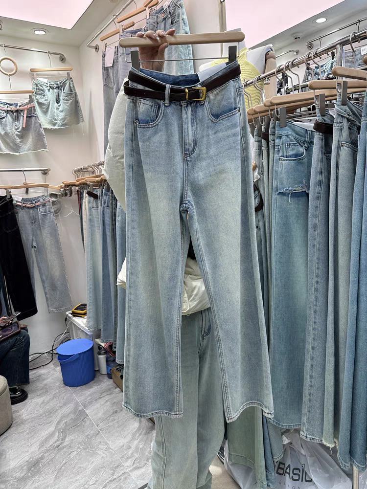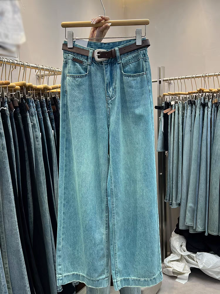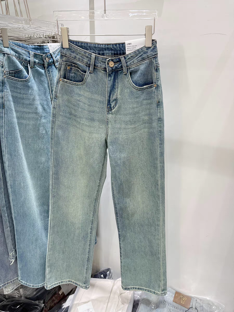 韩版牛仔裤批发一手货源库存牛仔裤弹力高腰阔腿裤九分裤