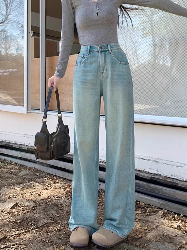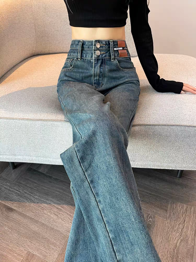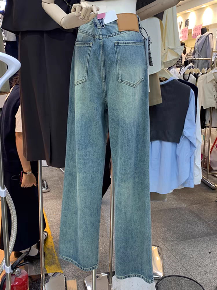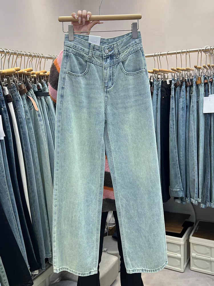 韩版牛仔裤批发一手货源库存牛仔裤弹力高腰阔腿裤九分裤