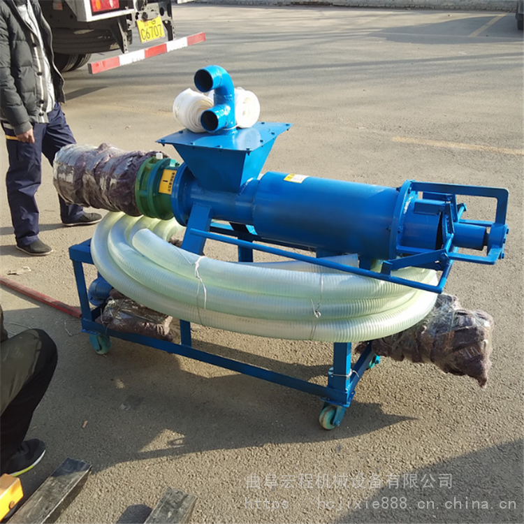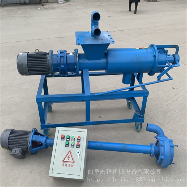 采用无堵浆液泵将需要分离过滤的原浆物料,抽至固液分离机进料口,然后浆液、粪液经固液分离机螺旋绞龙叶片挤压过滤,过滤出的废水从固液分离机下端流走,分离出的固体物质从固液分离机前端排出。