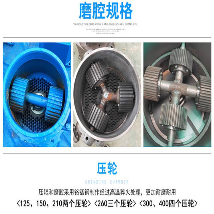 5、适应不同的物料,***压制效果。木屑、玉米秸秆等压缩成型需要很大的压力,在同类制粒设备中,辊轮部件是整个设备的中心部件,且采用合金钢,了辊轮的使用寿命。