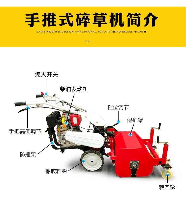 | 打草宽度:60CM | 行走速度:50-60/MIN | 关键词:柴油农用自走式碎草机 秸秆还田机 果树草地粉碎机 |
