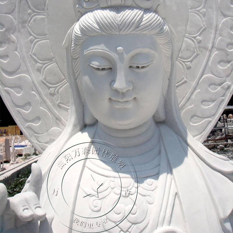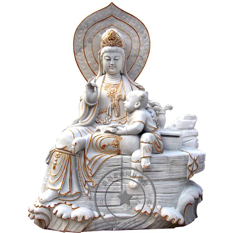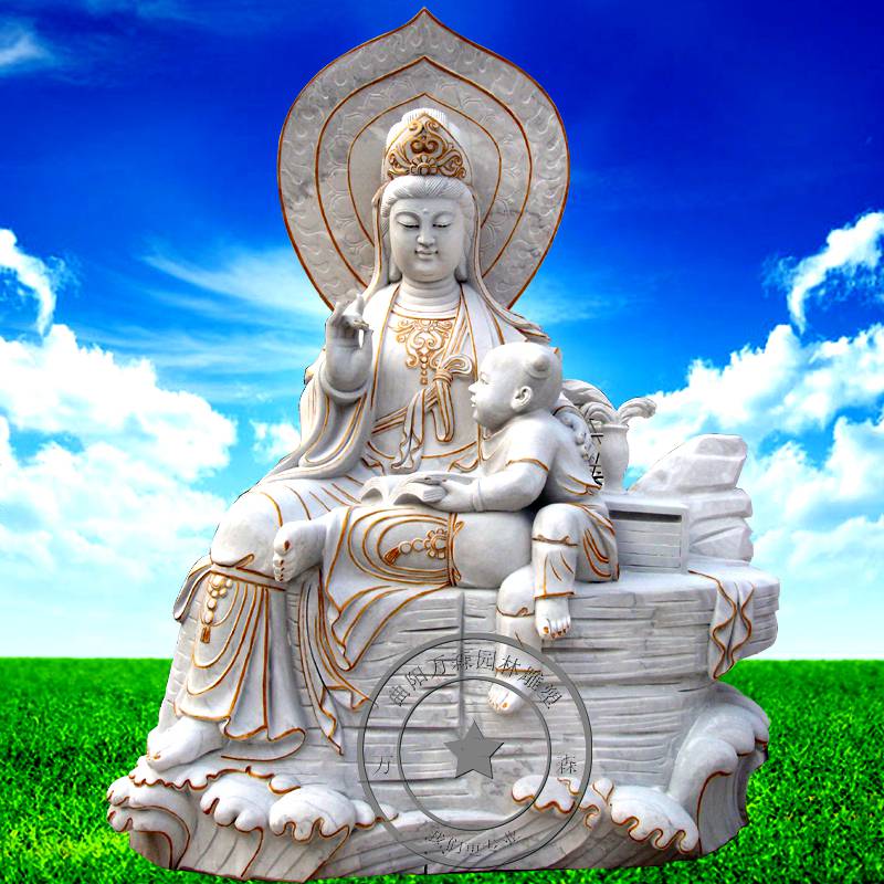 石雕观音菩萨 汉白玉童子拜观音 佛像雕塑寺庙供 万森雕塑