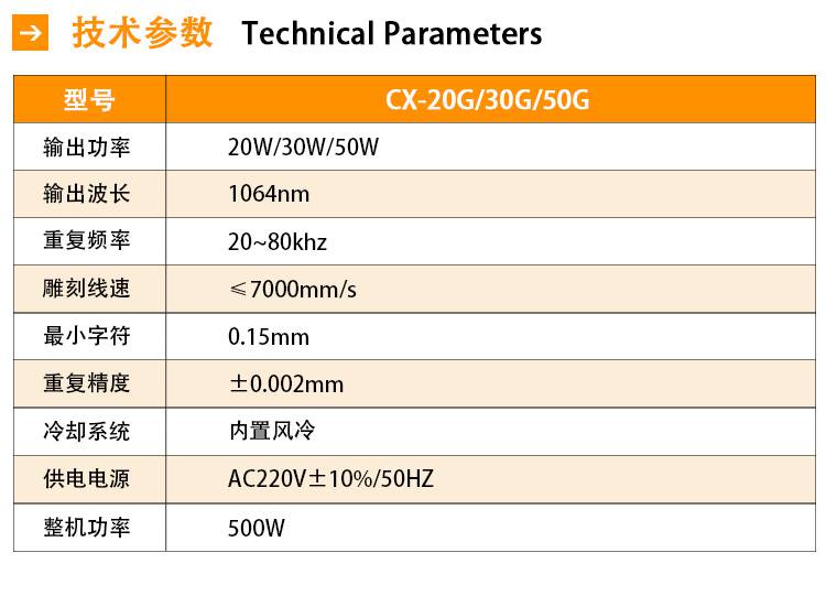 | 型号:CX-20G | 类型:激光打码机 | 打印方向:双向打印 |