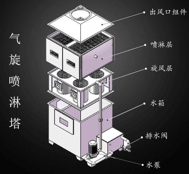 厂家定制气旋式喷淋塔_气旋混动喷淋塔内部结构_湿式旋流喷淋柜