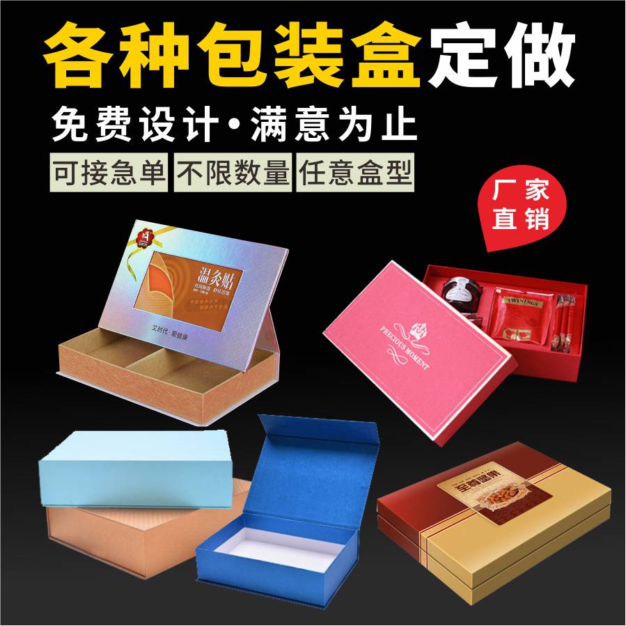 请提供包装盒的款式、数量、尺寸(高×宽×侧)、纸张厚度、颜色、印刷内容制作工艺等告诉客服,以便我们更准确的报价。
