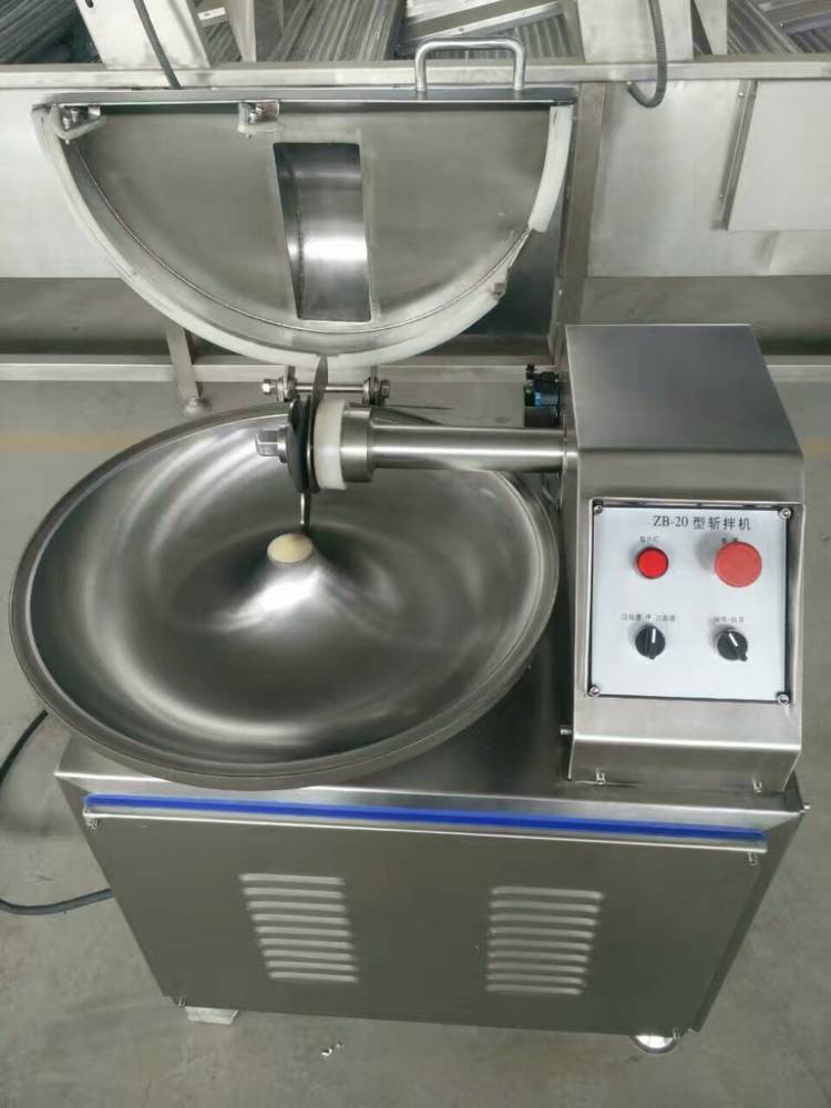 斩拌机是肉制品生产的关键设备,高速旋转的斩刀可把原料肉斩拌成细腻的糜状,同时可以把其它的辅料搅拌均匀。
